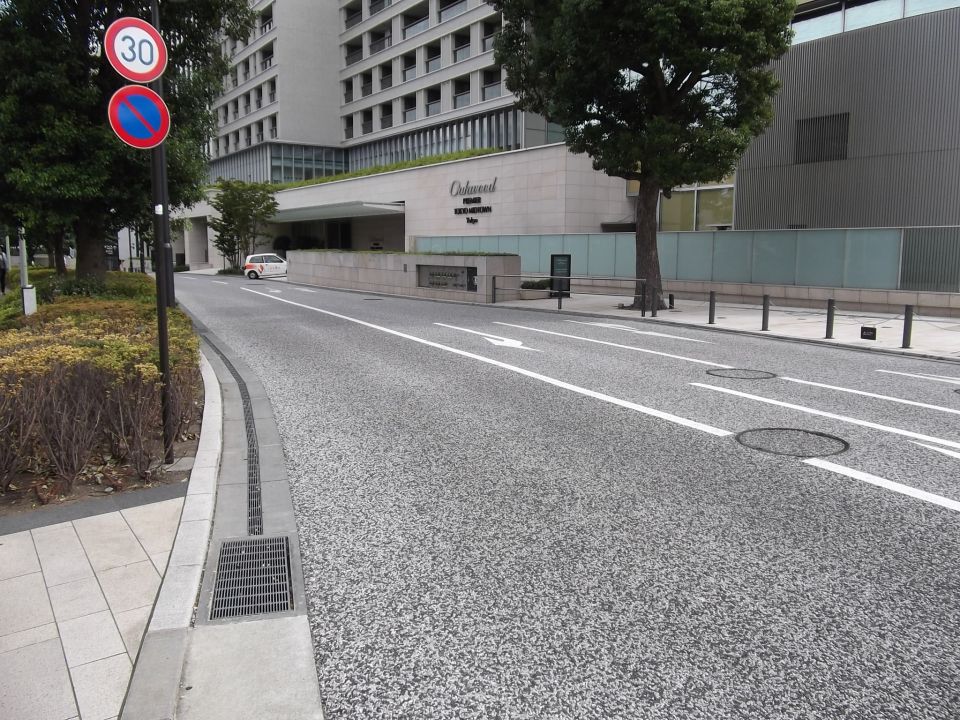 モイスチャロードは高粘度改質アスファルトを用いた母体アスコンの空隙を特殊な保水材で充填することにより、舗装体内に水分を蓄えます。この水分が日中の蒸発(気化熱が奪われる)することによって、舗装の温度上昇を抑制します。