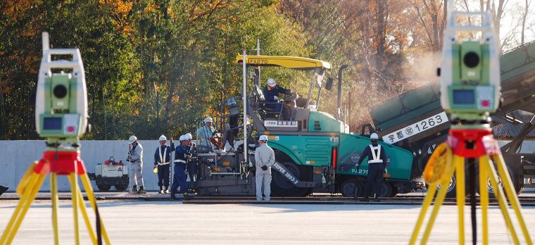 ICT施工とは、情報通信技術(ICT)を建設施工に活用して、高い生産性と施工品質を実現する新たな施工システムです。ICTにより建設機械の動きをmm単位で制御することで、施工の品質や出来型の精度が高まります。また、建設機械の制御に用いる設計データを、出来形の検測にも活用しています。