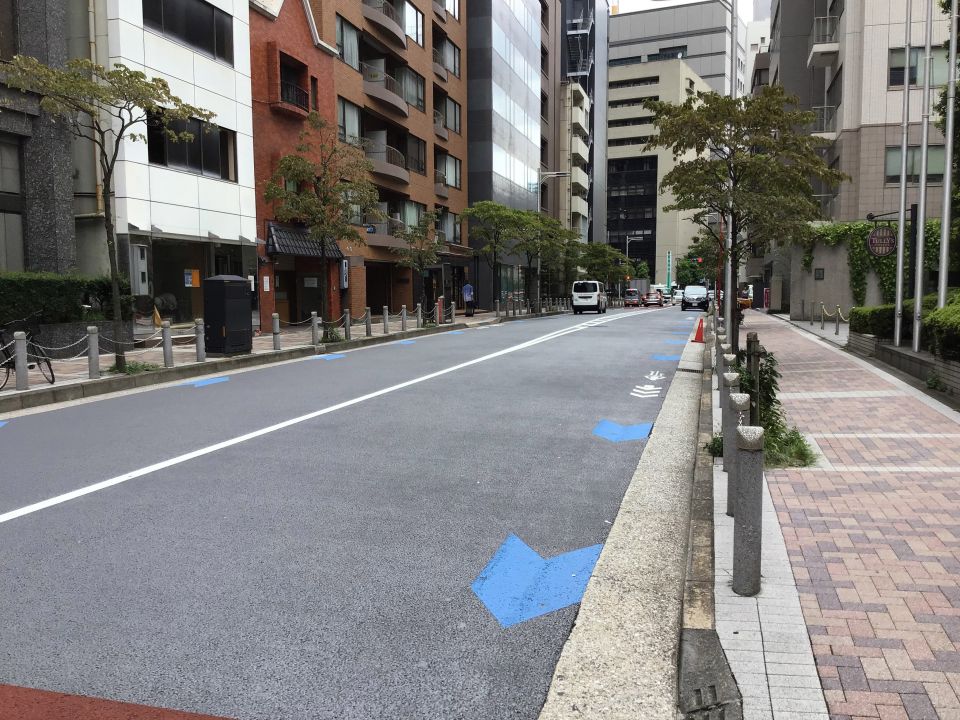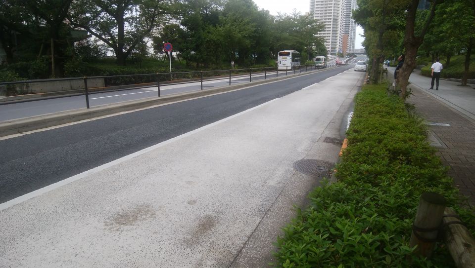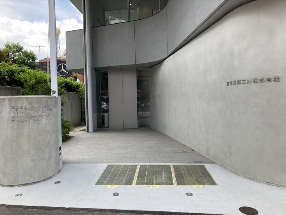 TOAのヒートシールド(遮熱性舗装)は、アスファルト舗装の路面上に遮熱性塗料を散布する工法です。遮熱性舗装は、日射エネルギー量の約半分を占める近赤外線を高反射することによってアスファルト舗装の熱吸収を抑えて、路面温度の上昇を抑制する働きがあります。