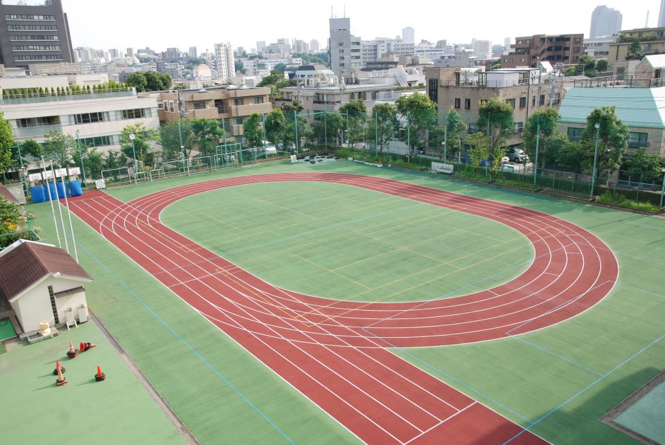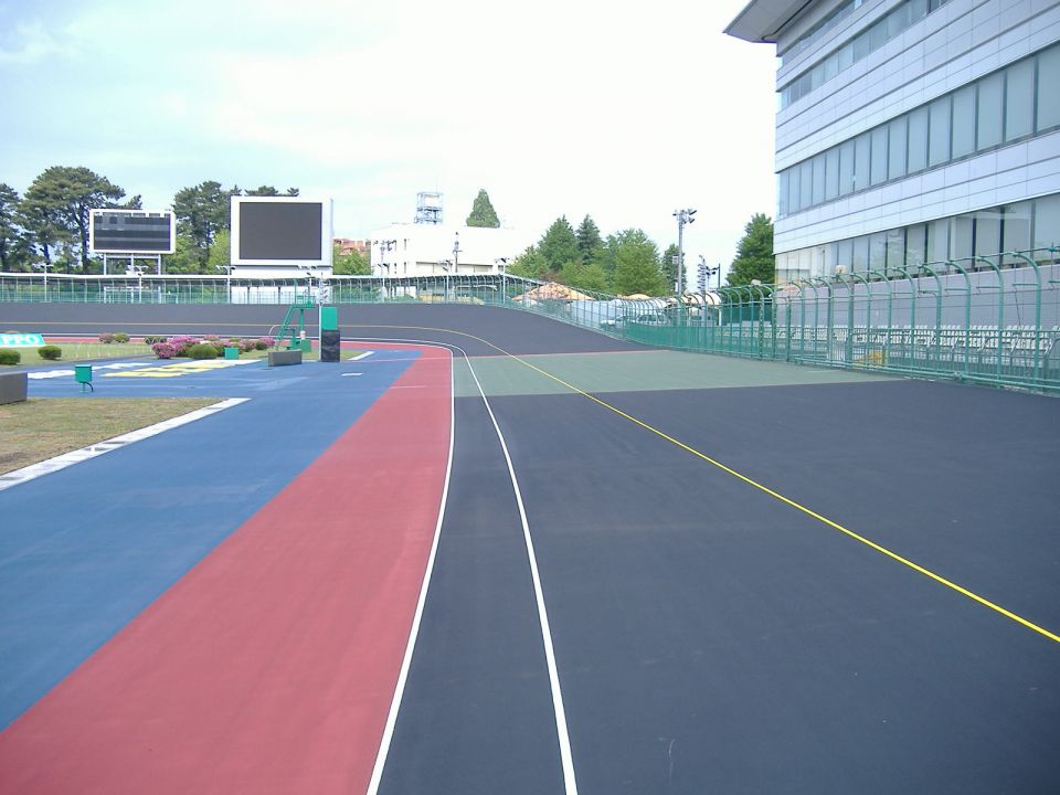 ゴム粉末を樹脂エマルジョンの結合材で固化したラブクッション層を持つ合成ゴム系コートです。用途面でもソフトコートの汎用タイプで普及品です。
