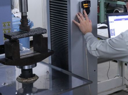 一方、技術的な面ではギャップもありました。大学では生命工学を専攻し、細胞を対象とした数マイクロ単位の実験をしていたため、最初は舗装のキロ、トンといったスケールの大きさに驚きました。しかし、舗装材料はゴムや樹脂などの高分子材料を駆使することも多い化学的な製品です。経験を重ねる中で、数パーセントの配合の違いが性能に大きく影響することを知り、精密さが求められる点では共通していることに気付きました。今では、この分野の奥深さに魅力を感じながら仕事に取り組んでいます。
