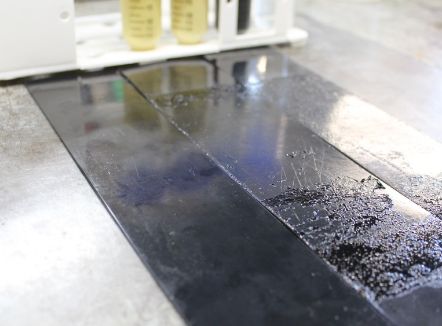- 入社時から技術研究所に所属。3年間は「アスファルト乳剤」という道路舗装材料の研究開発に携わりました。担当したのはまだ市場に出ていない新技術だったため、製品として世に送り出すために配合の最適化を行ったり、実際の道路現場で試験施工し性能を検証したりしました。