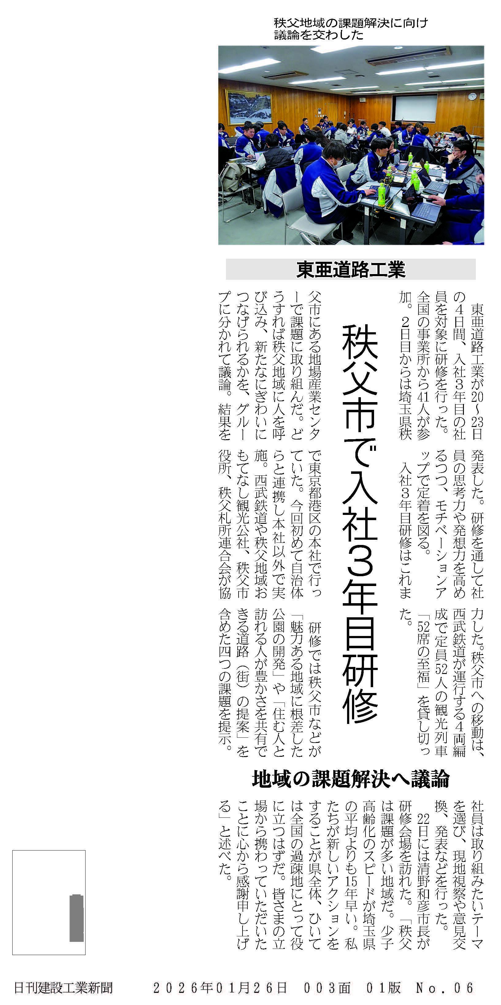 日刊建設工業新聞に当社3年目研修の取り組みが紹介されました